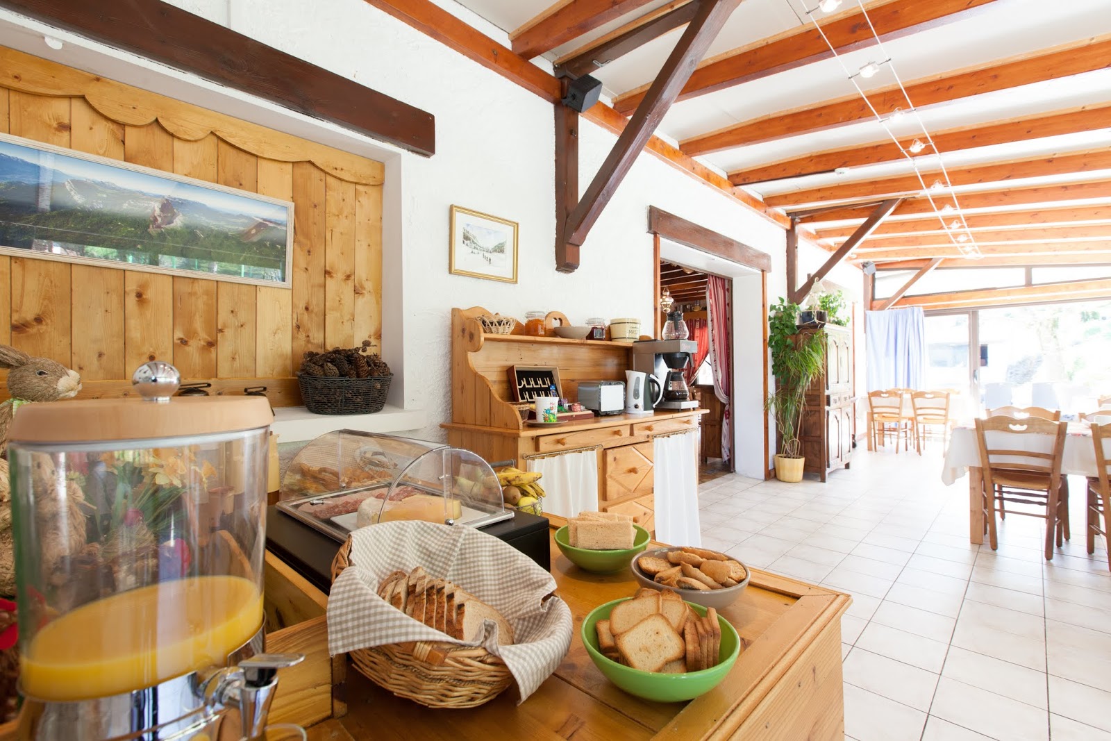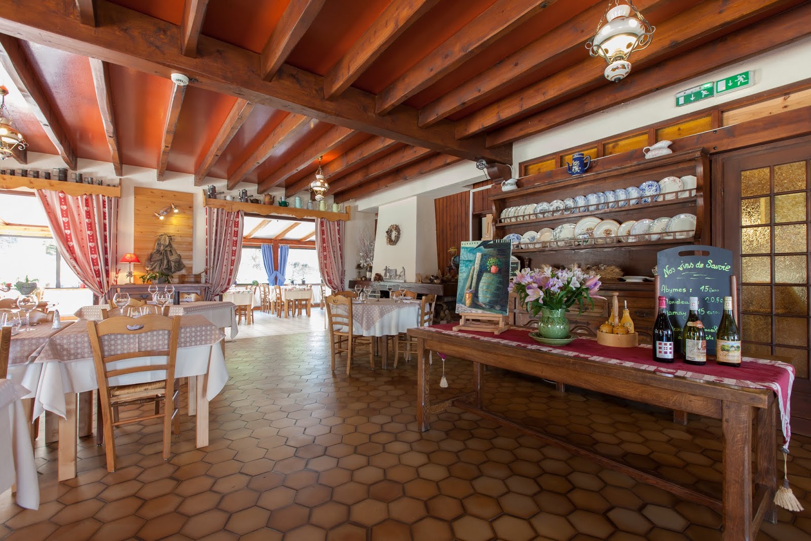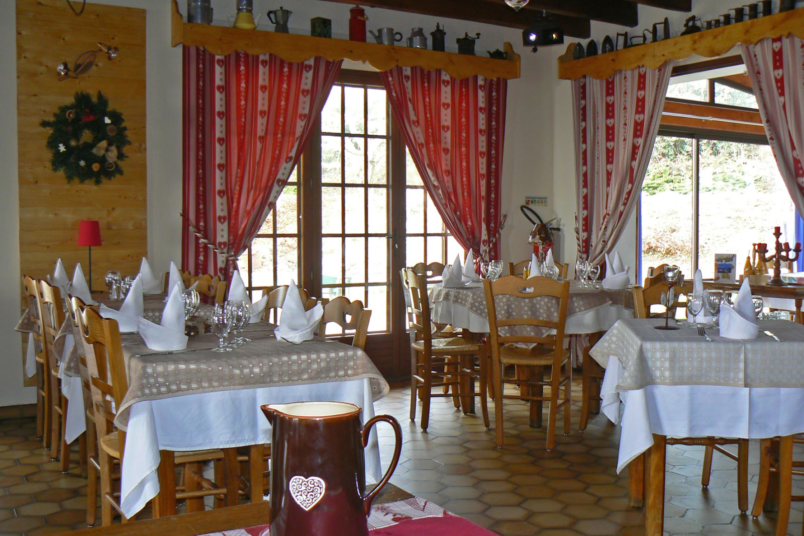 En pleine nature, dans une grande pièce chaleureuse où crépite le feu l’hiver, des menus concoctés à partir de produits frais et de saison vous seront proposés. Mobilier en bois typiquement montagnard, rideaux et autres éléments de décoration de teinte rouge et blanche vous plongent au cœur d’une atmosphère montagnarde accueillante !