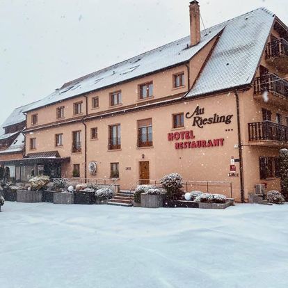 Installez-vous à la table de notre Restaurant climatisé avec une vue panoramique et profitez d’une vue à 180° sur le vignoble alsacien, les Vosges et la Forêt Noire au loin.