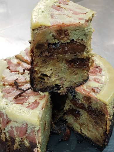 La Manigodine : Sorte de Reblochon entouré d’écorce d’épicéa et fondu au four accompagné de pommes de terre, salade verte et charcuterie de pays