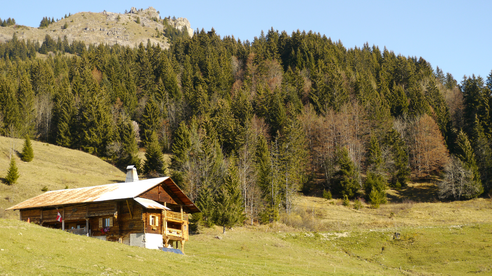 A 1345 m d'altitude, on s'enivre d'une vue exceptionnelle face à la chaîne des Aravis avant d'être accueilli par Gisèle et Jean-Pierre qui vous guideront dans le chalet de leurs aïeux.