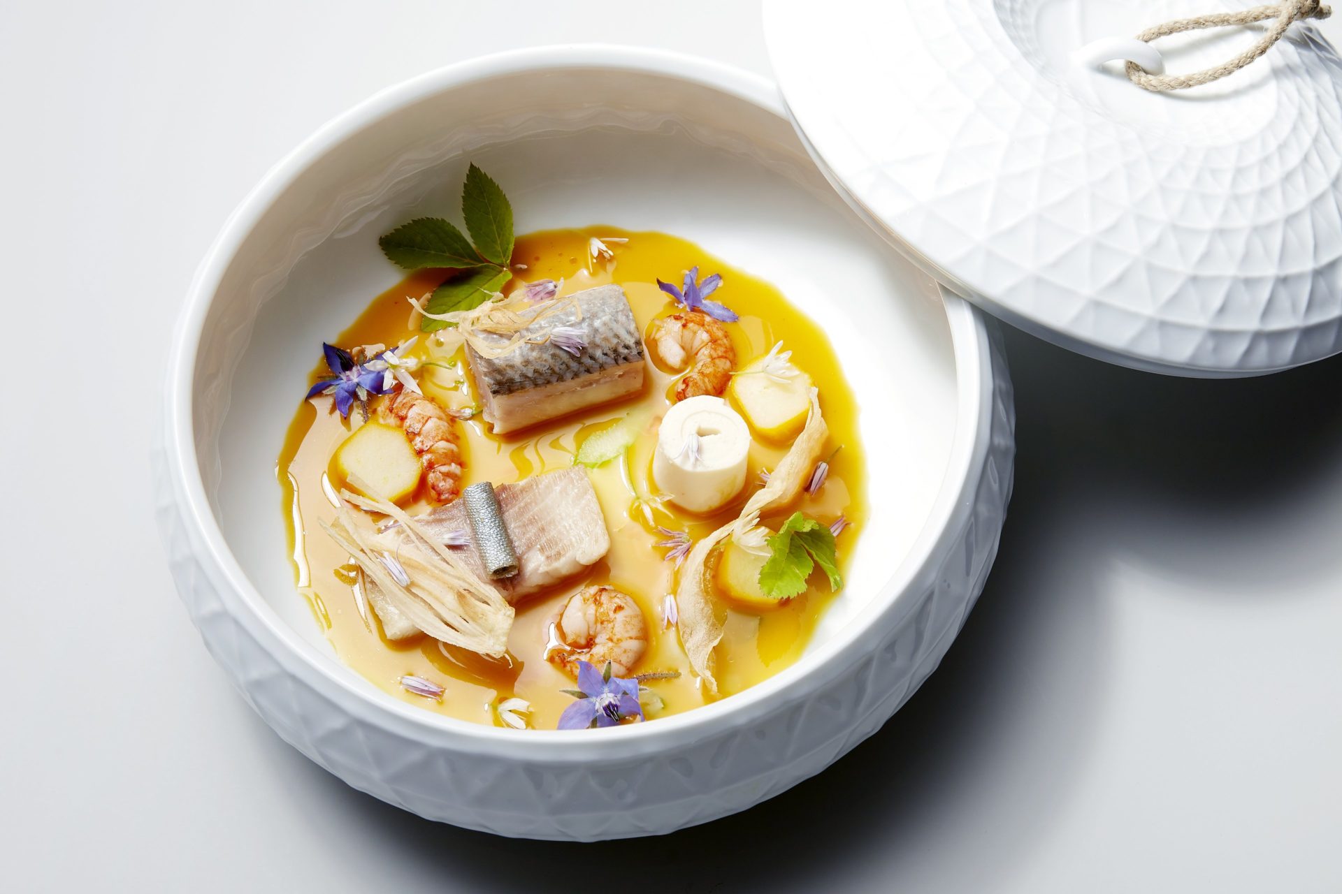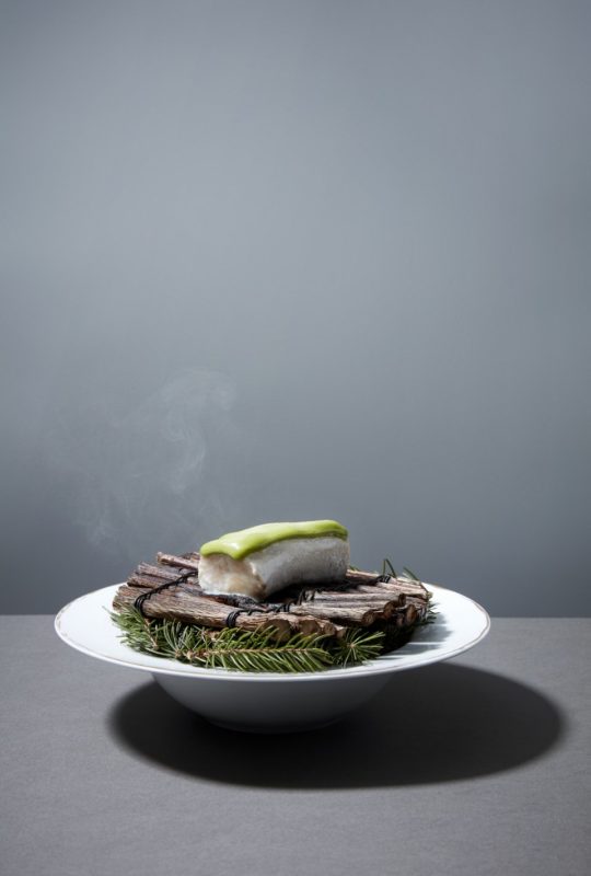Brochet confit, polypode commun et verveine