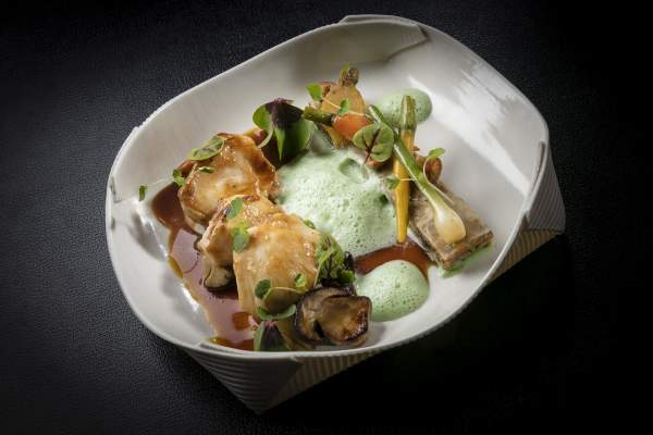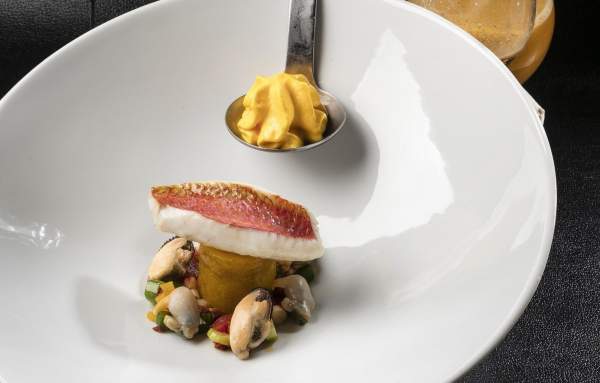 Le Chef est aussi un amoureux de la région. Il y a tissé tout un réseau de fournisseurs enthousiastes à voir leurs produits transformés et sublimés à chaque saison. Chevreau, cochon noir ou agneau croisent ainsi sur la carte mérou, anguilles et autres poissons et coquillages de Méditerranée, sans oublier l’exceptionnelle sélection des fromages de la région et au-delà.