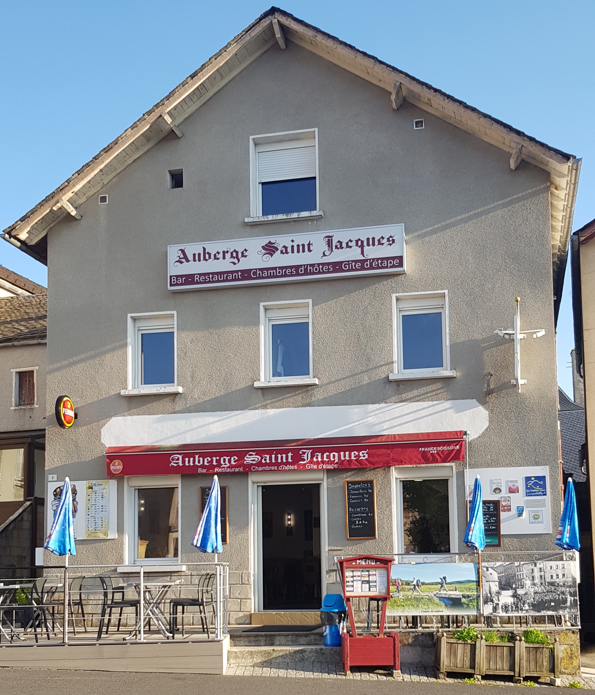 Bienvenue à l'Auberge Saint-Jacques, situé sur la place principale de St-Alban sur Limagnole, commune traversée par le chemin de Saint-Jacques de Compostelle. Notre gîte d'étape et nos chambres d'hôtes sont à votre disposition, pour une nuit ou pour un séjour plus long, avec le restaurant dans lequel nous vous proposerons des produits du terroir.