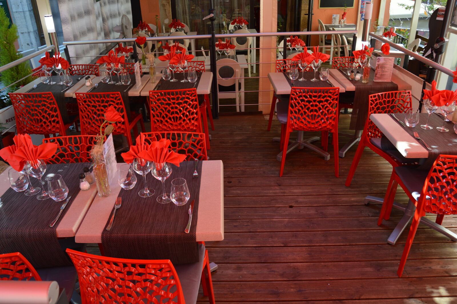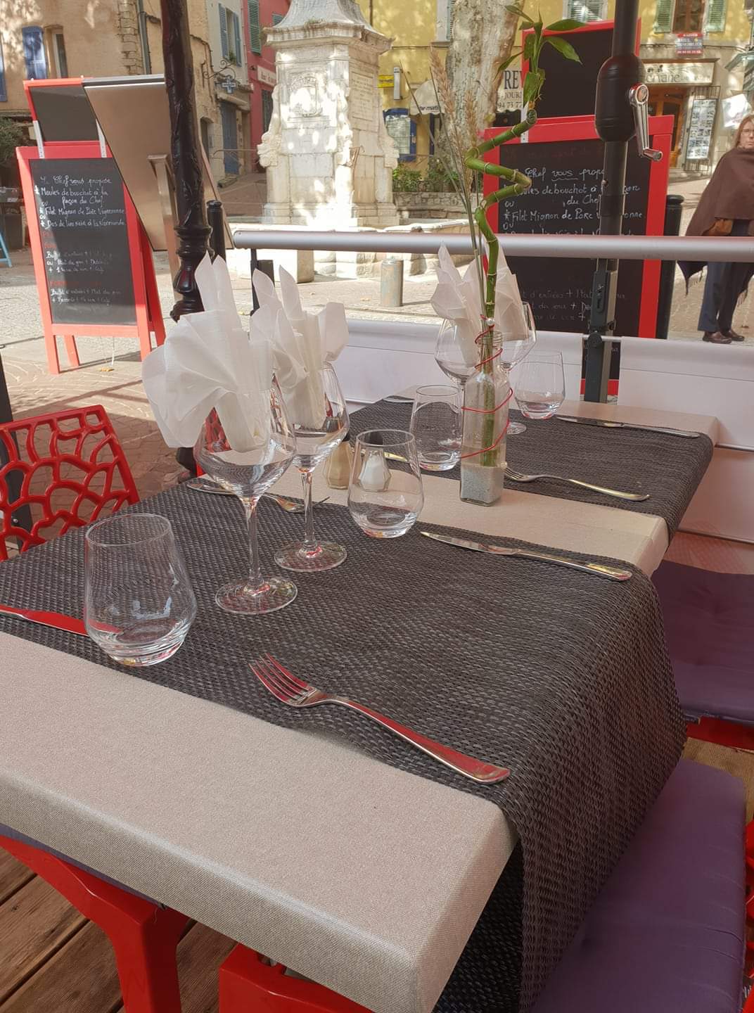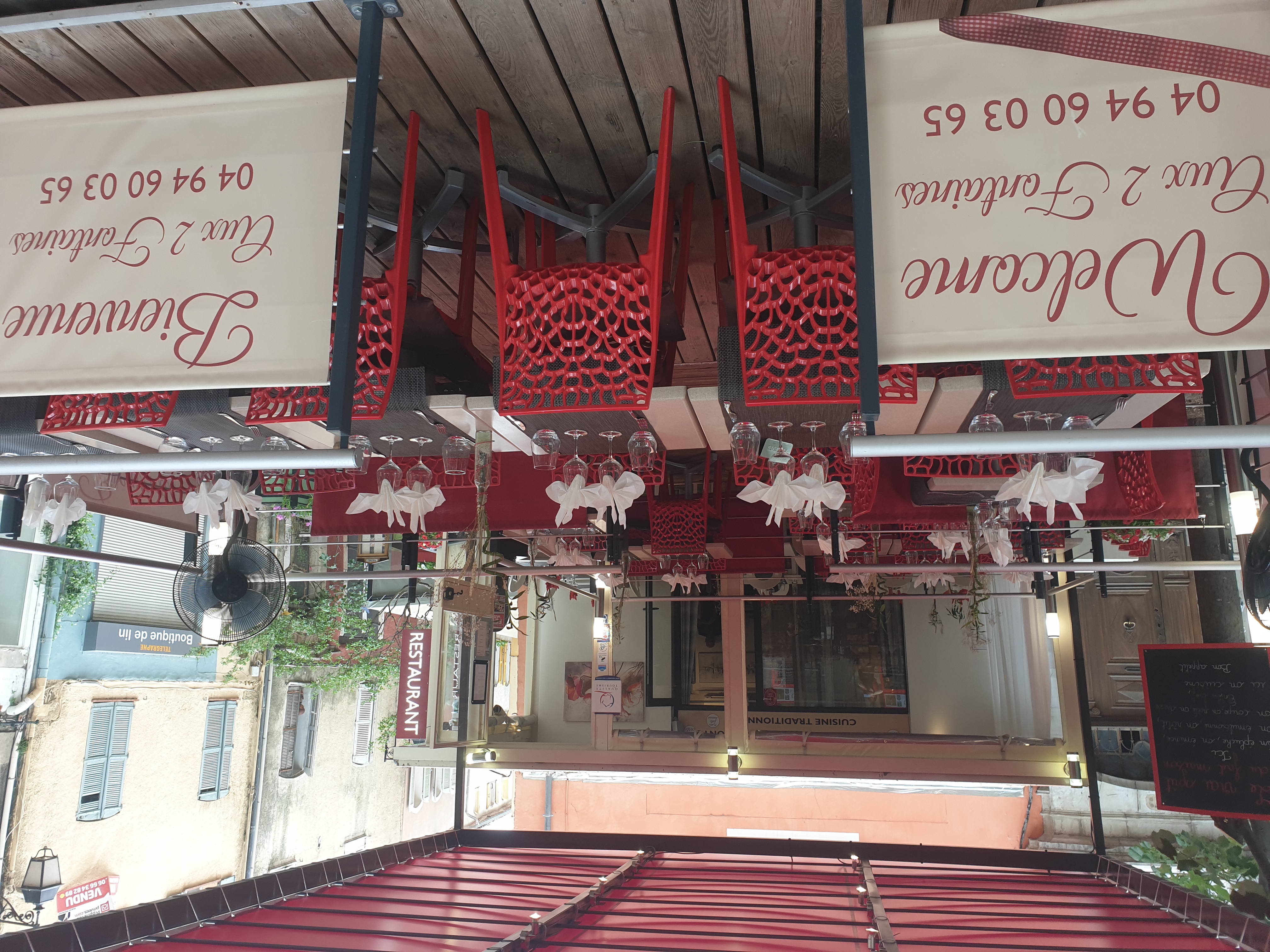 Au cœur du village de Lorgues, charmante bourgade située à 13 km à l'Ouest de Draguignan, bénéficiant d'une situation privilégiée à mi-chemin entre le golfe de Saint-Tropez et les gorges du Verdon. Vous ne pouvez manquer la couleur rouge de notre restaurant comme celle de notre passion de la restauration. Nous travaillons à l'ancienne avec des produits frais de saison et faits maison dont le poisson et les crustacés.