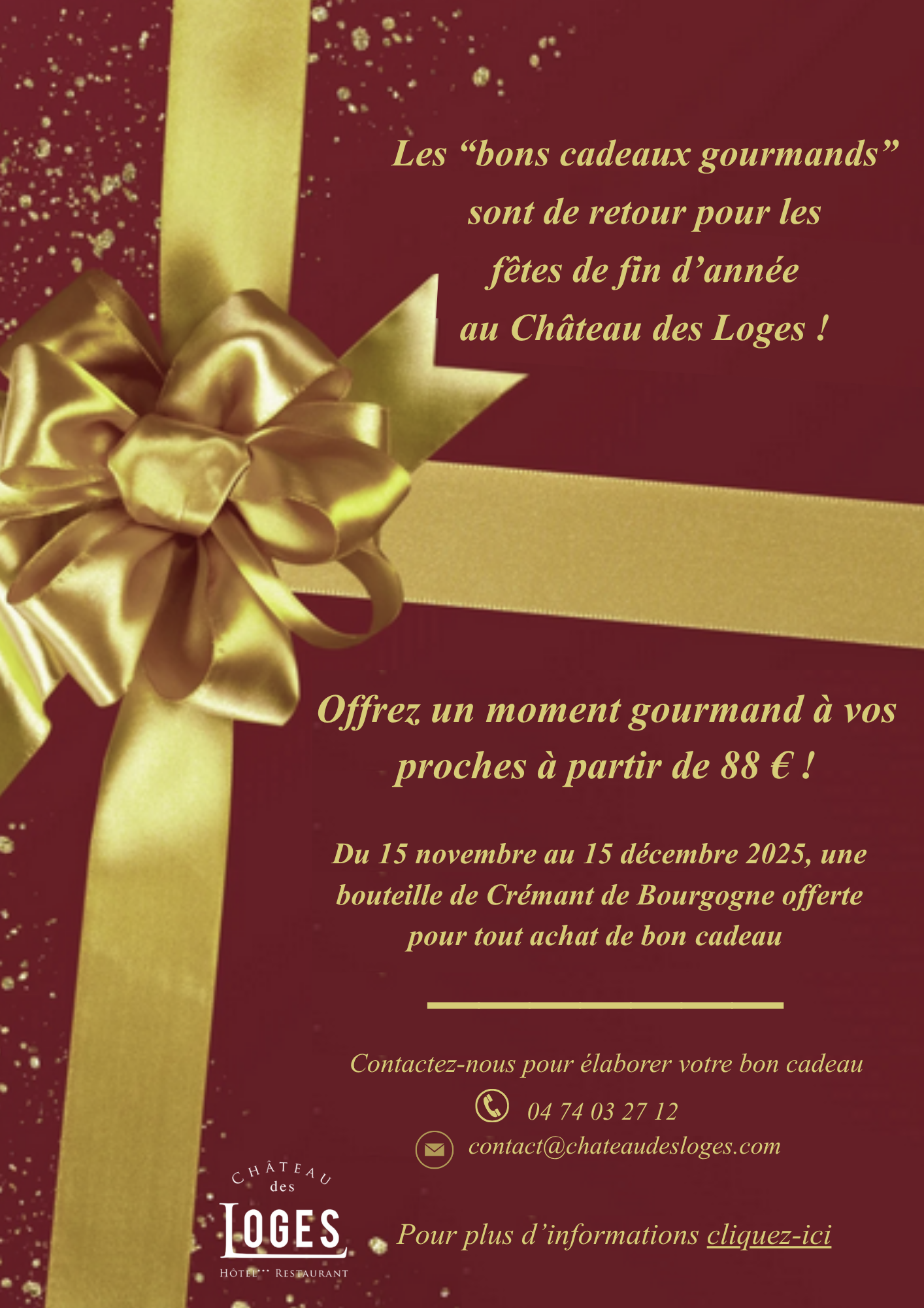 Contactez-nous dès aujourd'hui pour élaborer votre bon cadeau !