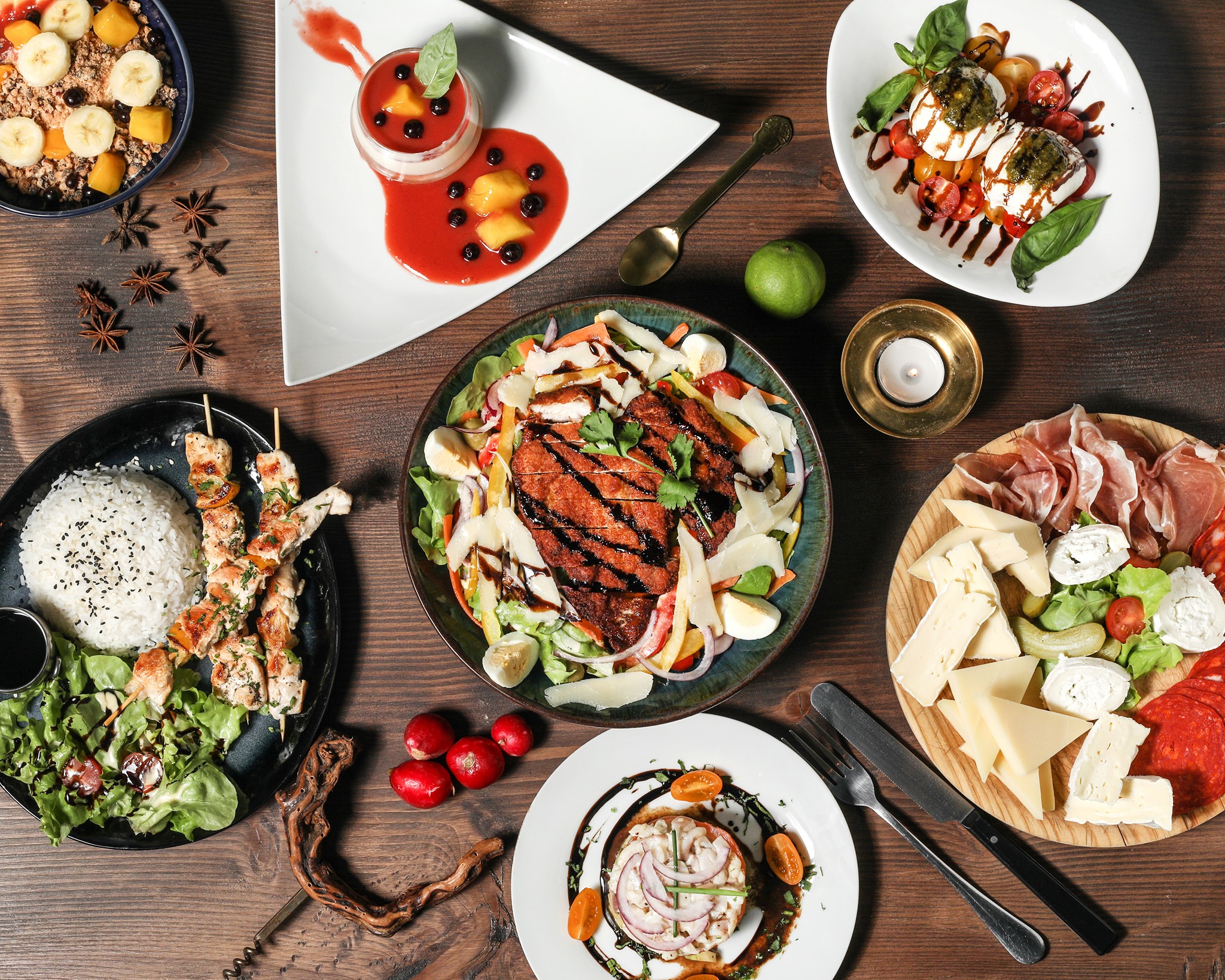 Garniture : écrasé de pomme de terre à l'huile de truffe, légumes de saison croquants, frites fraîches maison, frites de patates douces, frites au cheddar