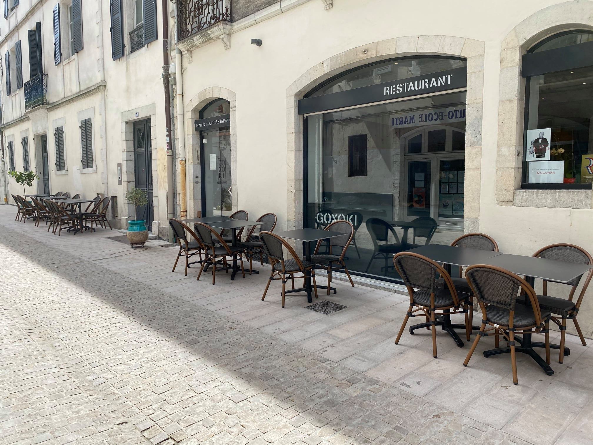 Goxoki signifie en basque « lieu chaleureux », offre une magnifique salle à manger voûtée, aux murs de pierres et à la décoration contemporaine.d'agréables fauteuils et nappes juponnées vous invitent à passer à table. Laissez-vous inspirer par l'exposition de toiles modernes et signées, le temps d'un dîner ou d'un déjeuner. En bon chef de famille, Franck Hourcastagnou, est aussi le Chef en cuisine.Il travaille avec ses proches et sa brigade hétéroclite. Une équipe assidue et passionnée. Dans ce couvent calme et intimiste, vous dégustez des plats authentiques de Gastronomie française tels que lièvre à la royale, poularde truffée sous peau ou encore desserts façon grand-mère.