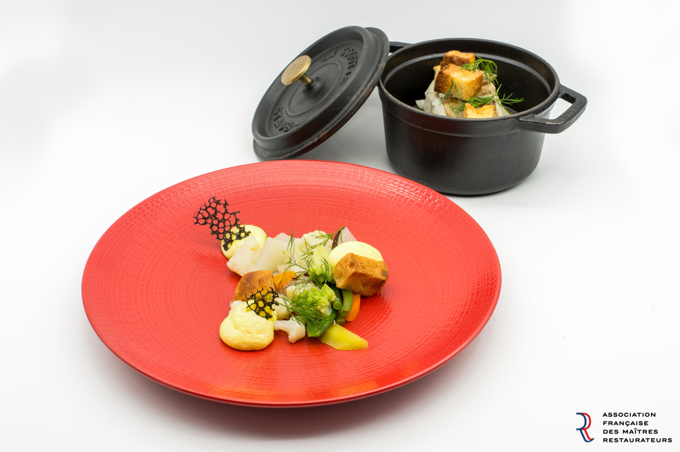 Filet de Maigre rôti et sa mousseline de Panais à la vanille accompagnés des légumes d’Automne