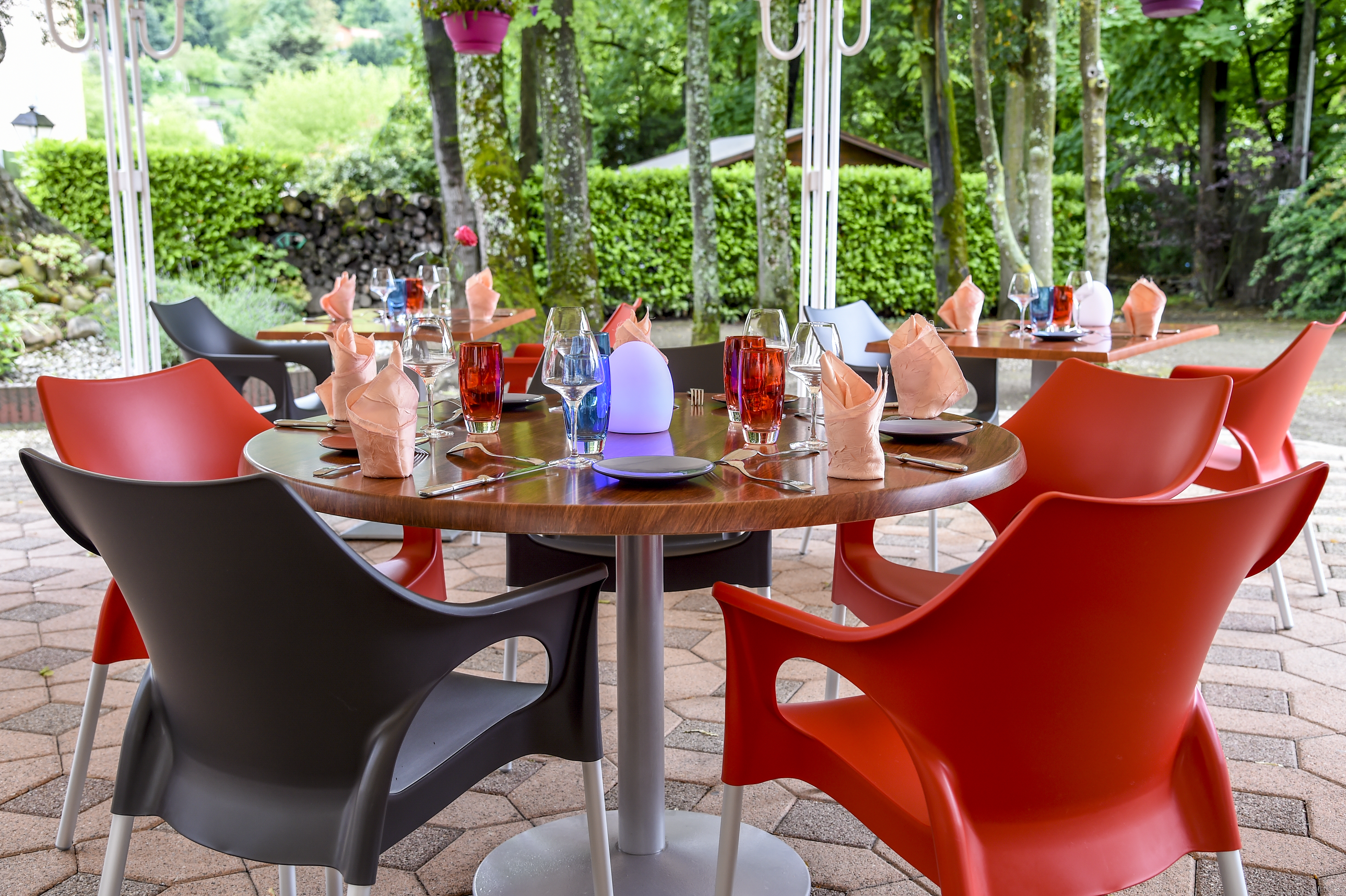 L'été, profitez de la grande terrasse abritée, entourée d'arbres centenaires, où vos enfants peuvent s'amuser en toute tranquillité dans le parc.