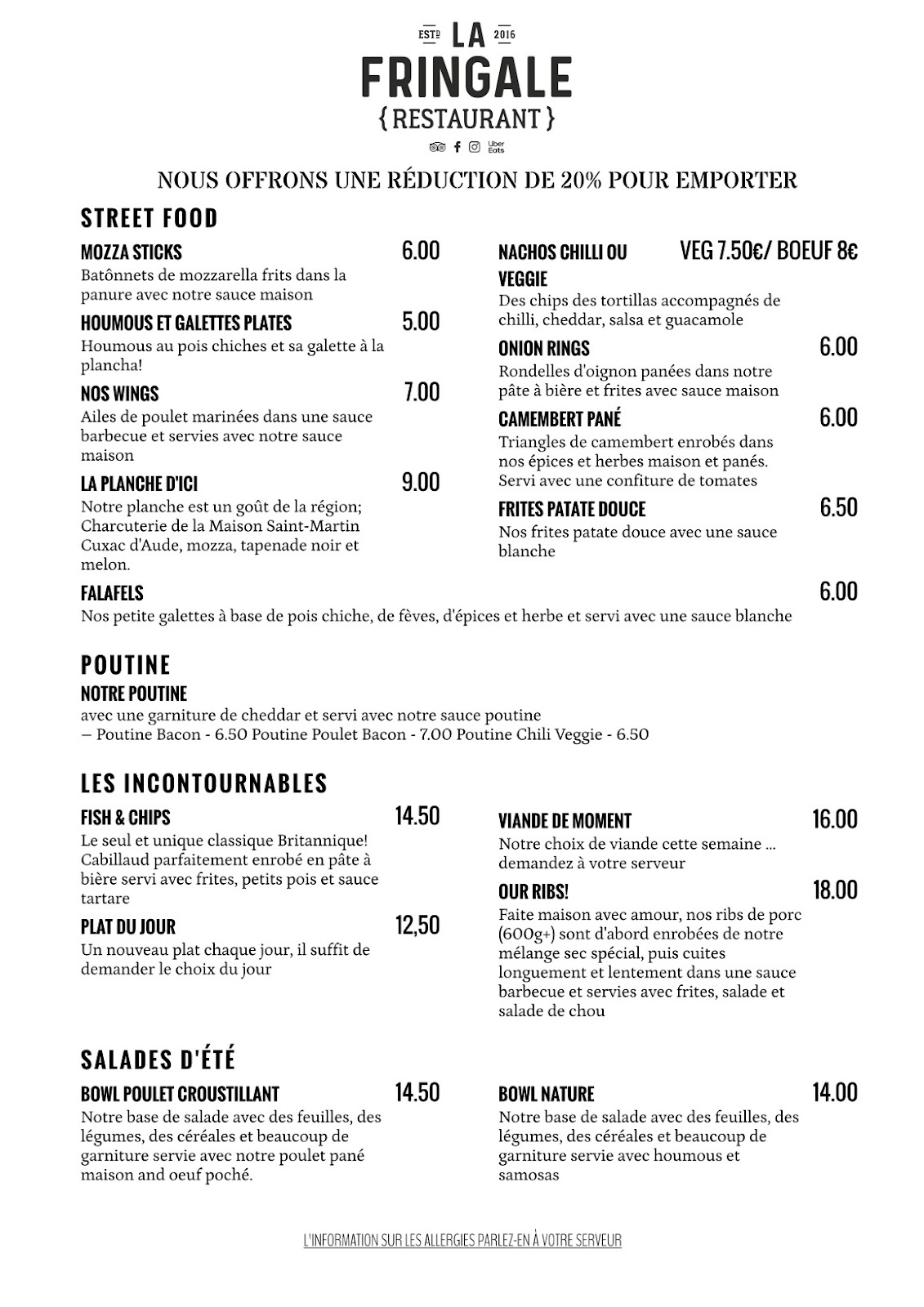 Chez La Fringale, nous servons des repas d'excellente qualité et nous vous invitons à goûter notre délicieuse cuisine.