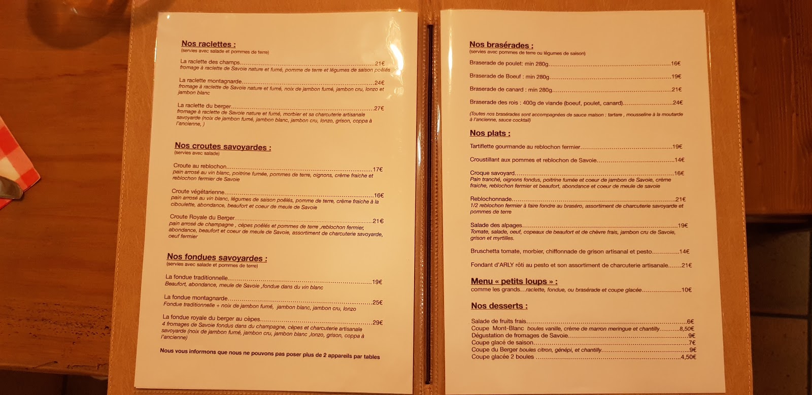 - Service à table