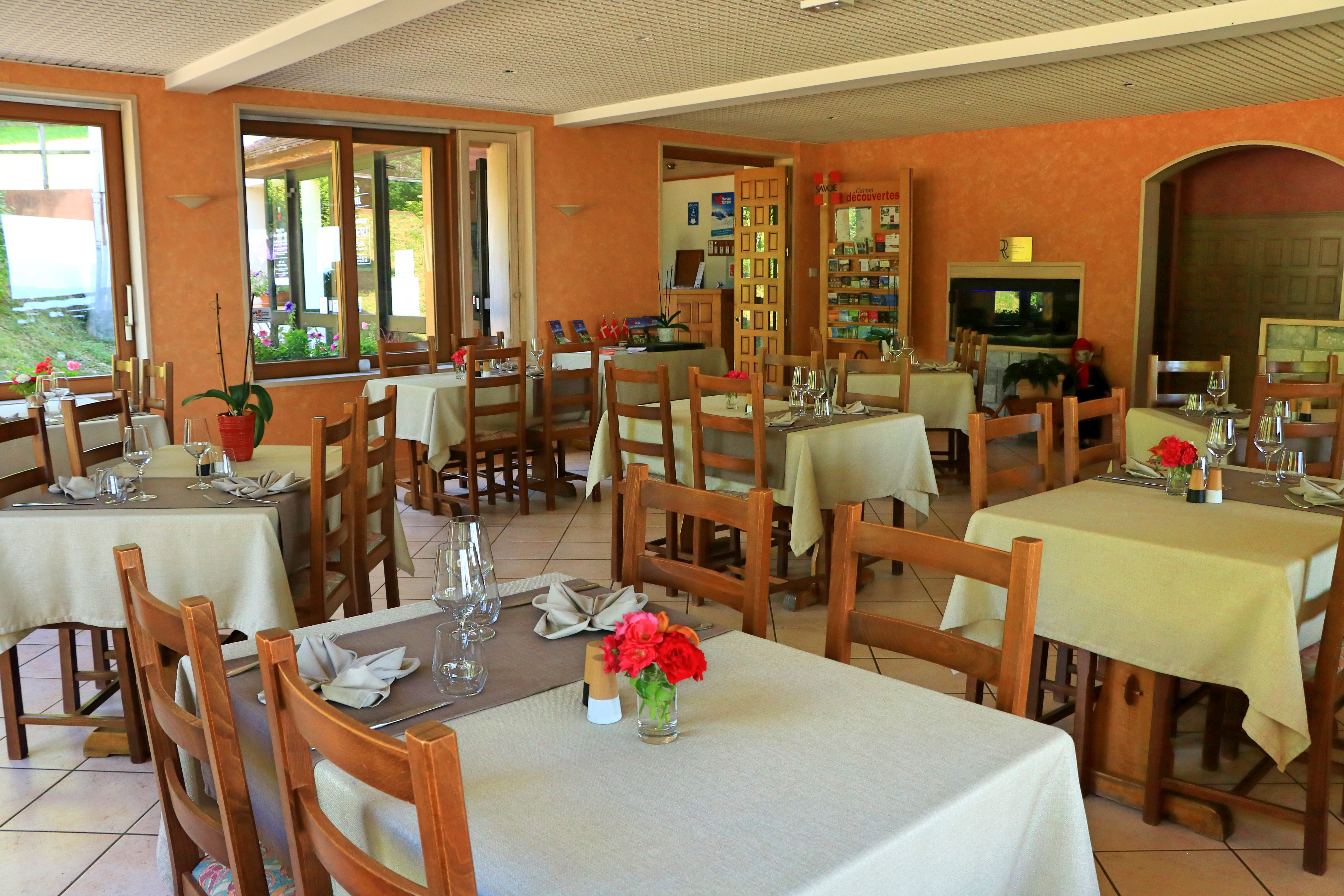 Leur restaurant est situé à 620 m d'altitude, au pied de la Dent du Chat, dans un cadre de verdure exceptionnel en Savoie