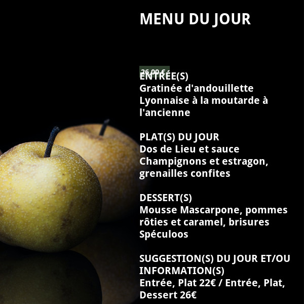 Tous les deux passionnés de notre merveilleuse gastronomie, nous travaillons à quatre mains afin de vous proposer une cuisine qui nous ressemble dans un esprit très convivial.