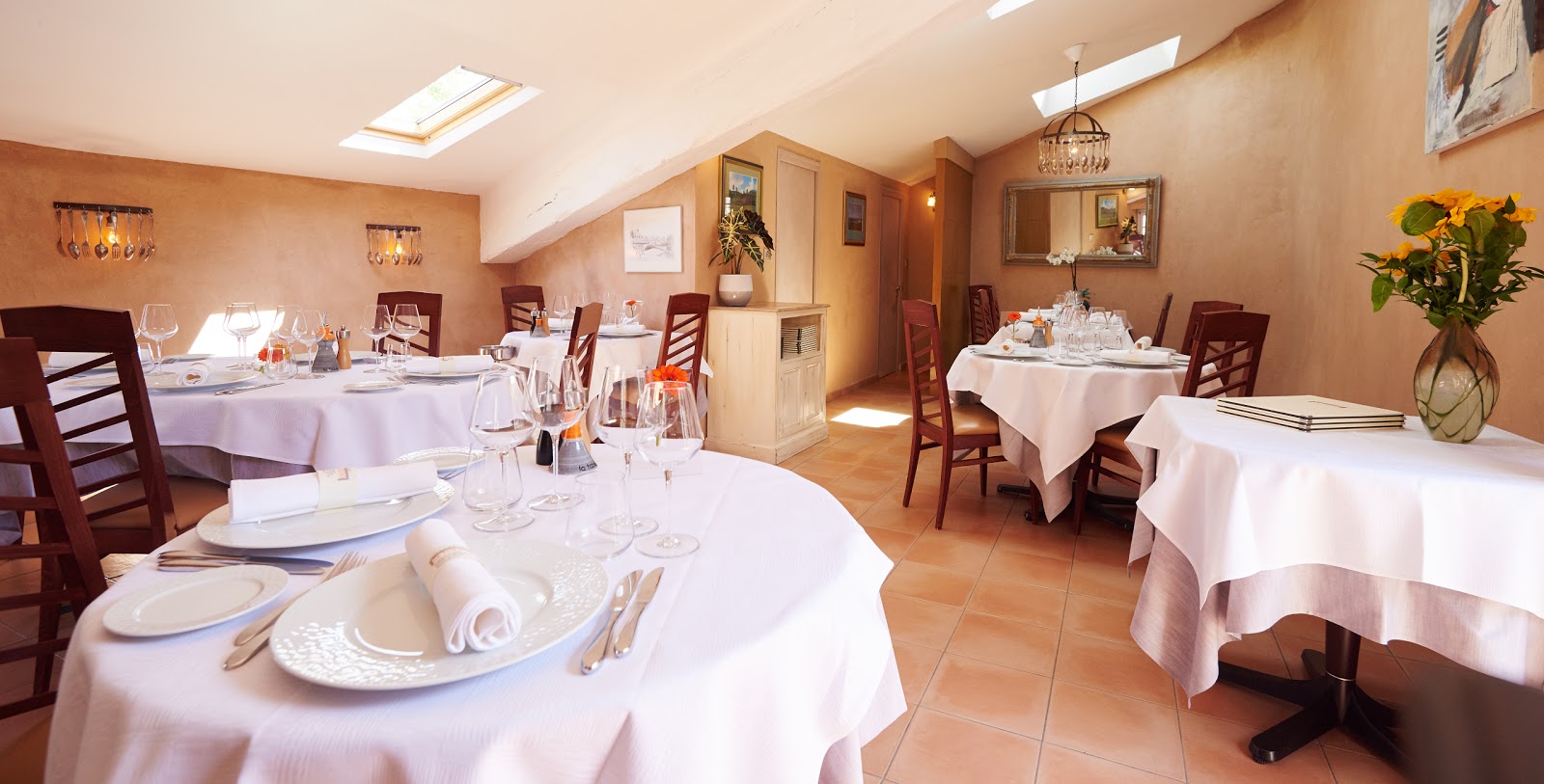 Au rez-de-chaussée, Laurent est en cuisine. À l’étage, Meia assure le service. La salle du restaurant, contemporaine et intimiste, peut recevoir une quinzaine de couverts. À la belle saison, vous profiterez de la terrasse calme et ensoleillée.