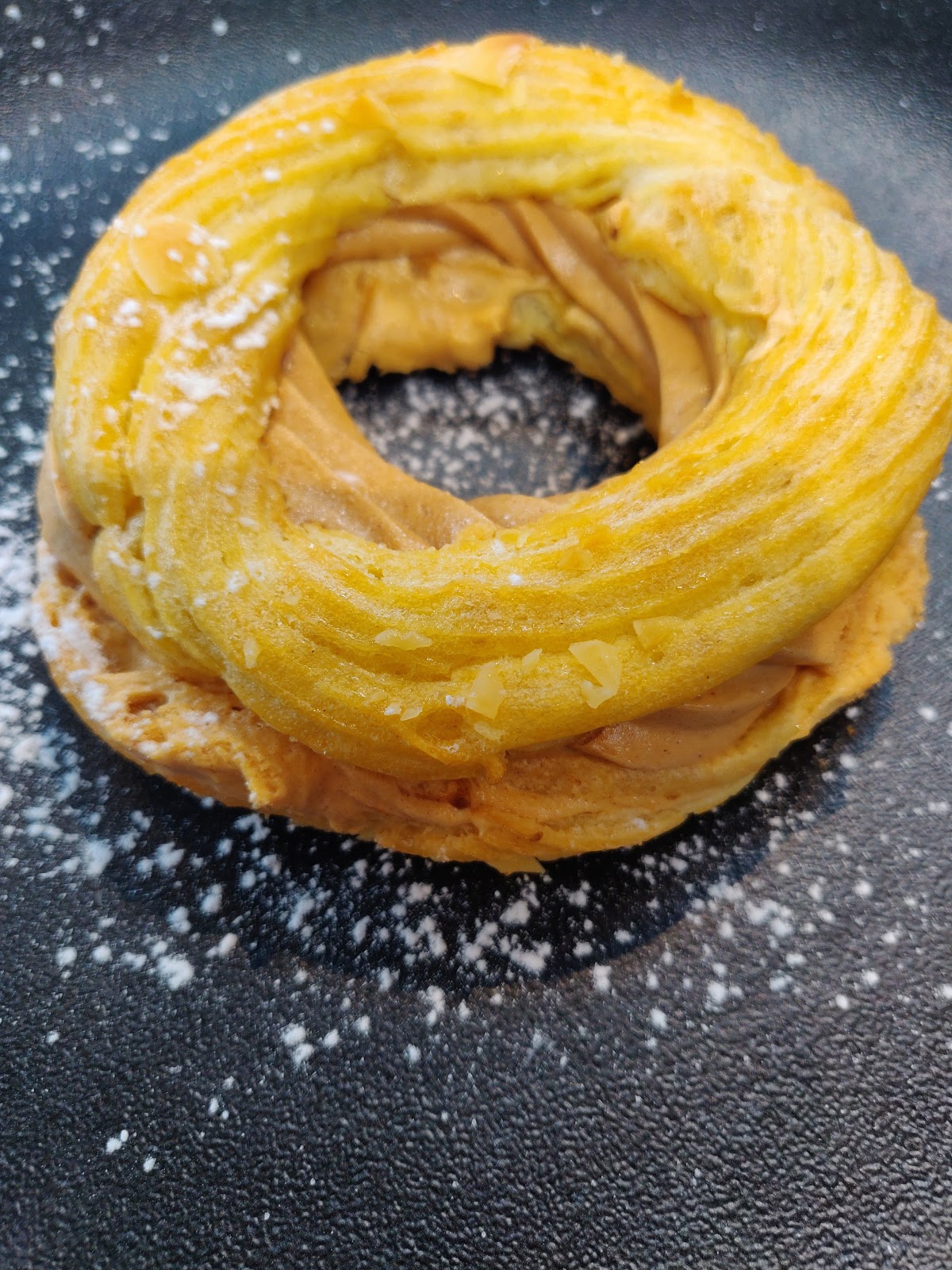 -crepiterole, glace vanille, Chantilly sauve chocolat amandes effilés