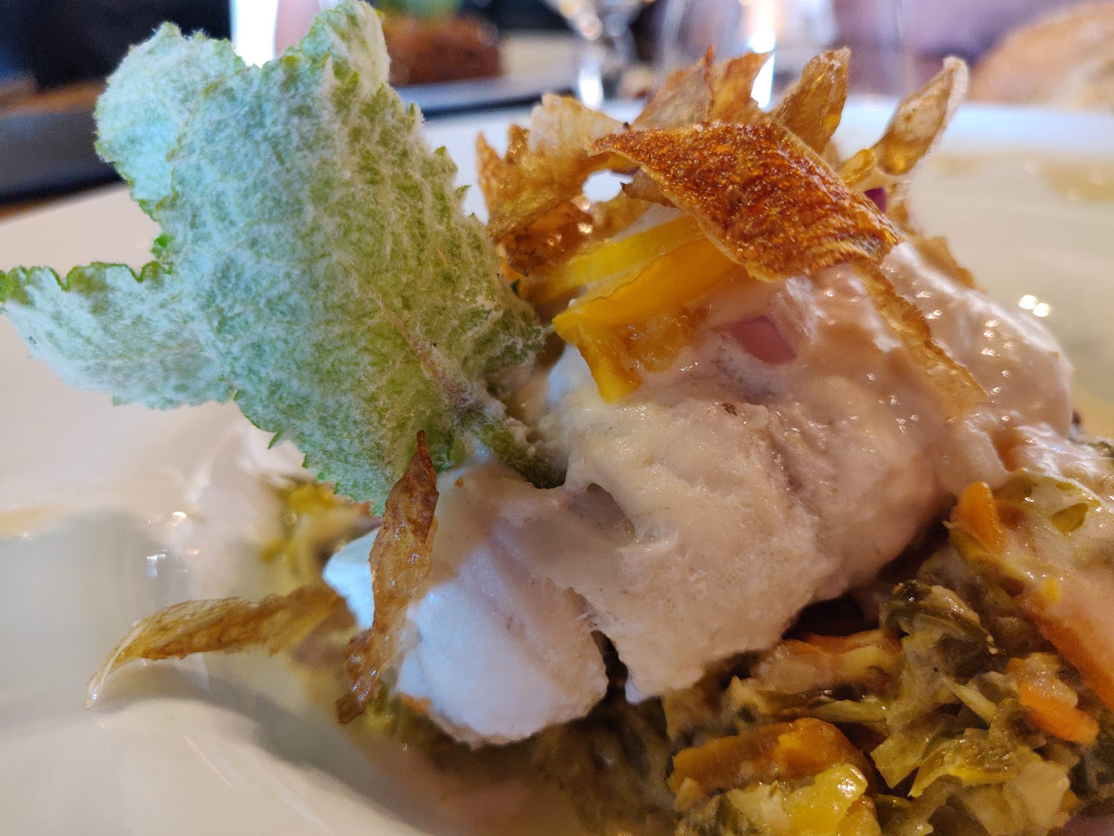 -filet de Bar a la plancha, crémeuse de jambon.
