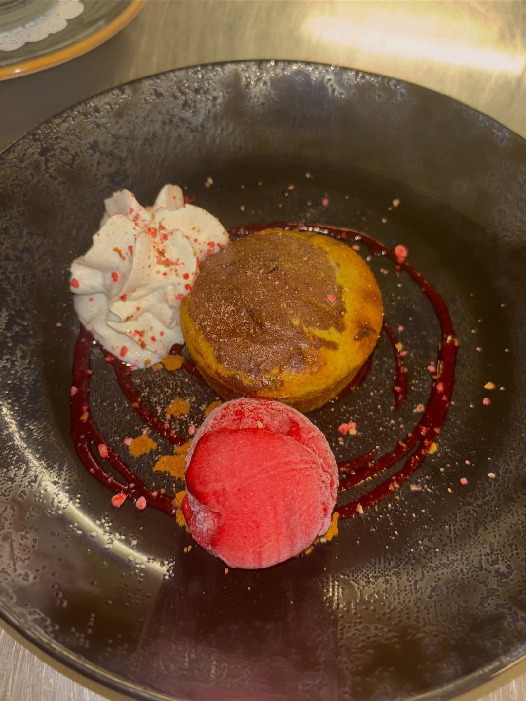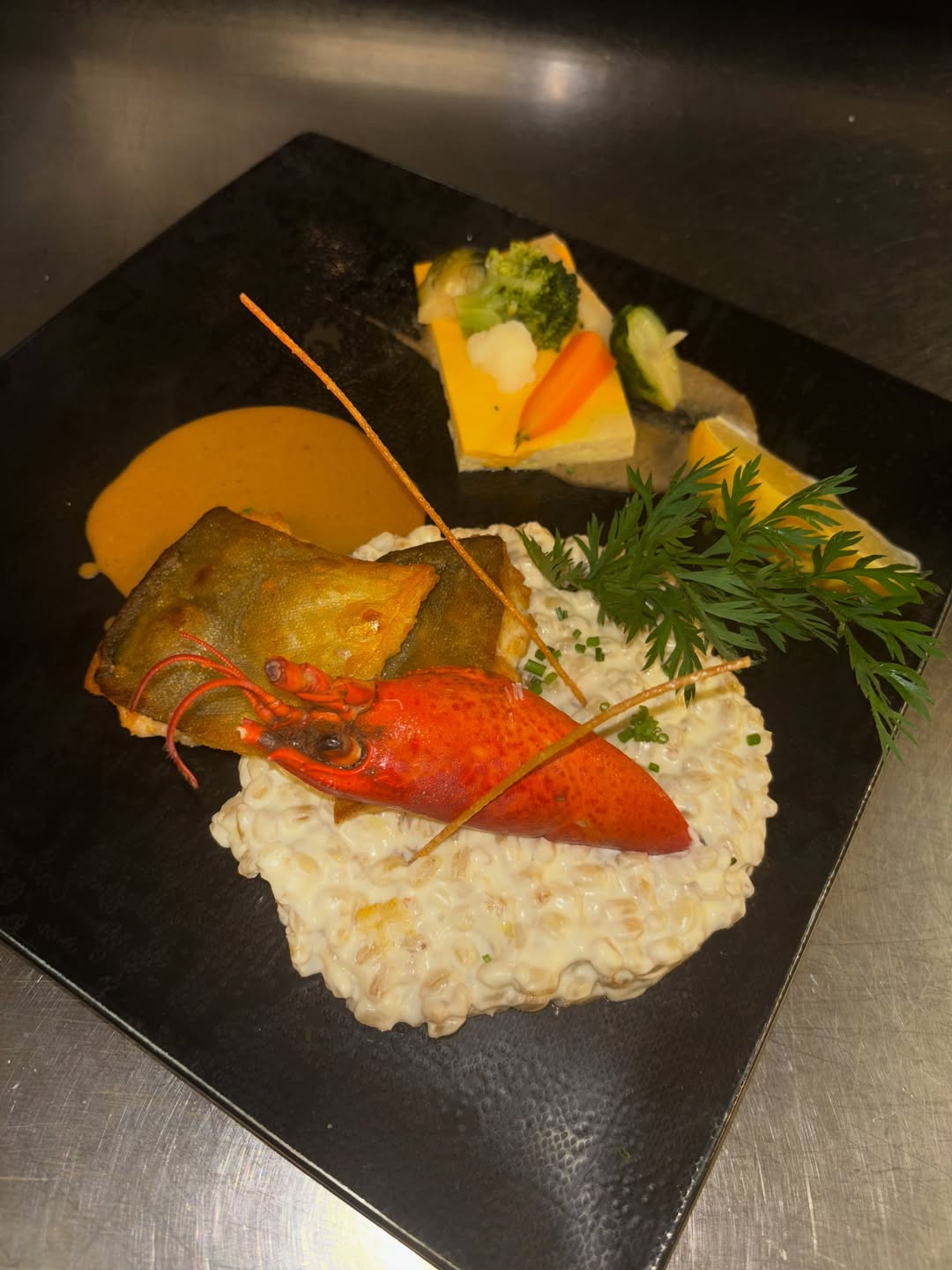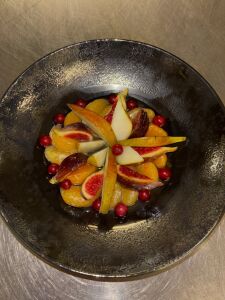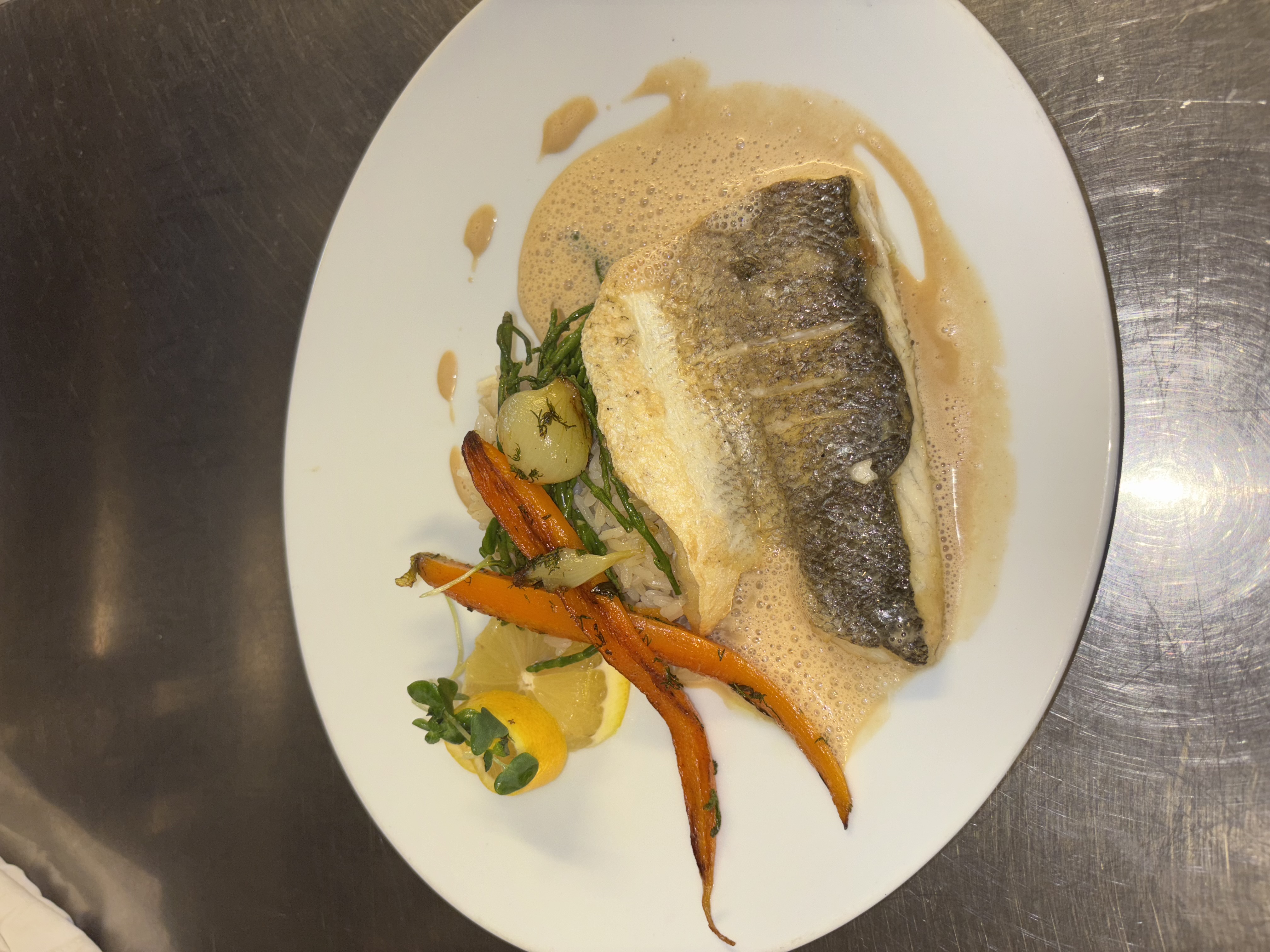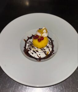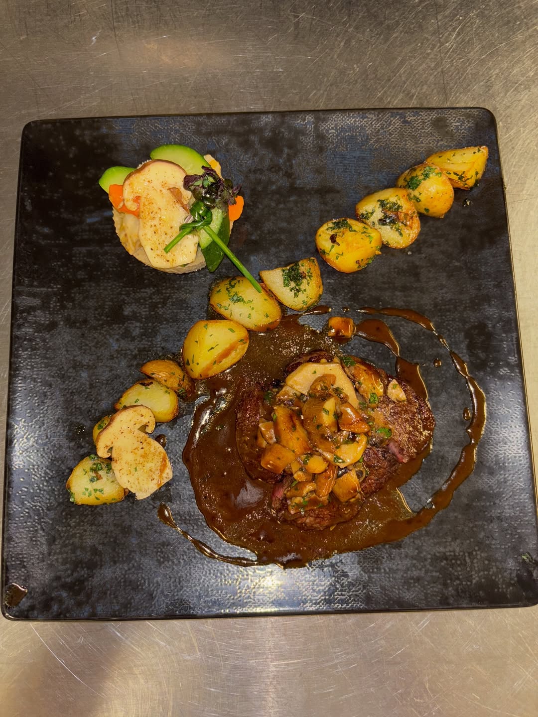 Poitrine de Veau roulée, farcie au ris de Veau, cuite en basse température, jus réduit à la sauge.