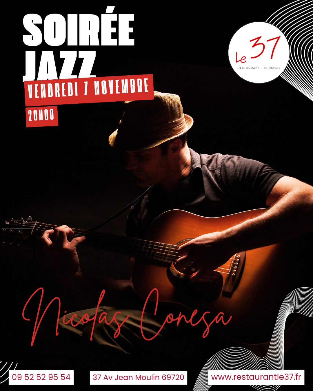 Vendredi 7 Novembre dès 20h, retrouvez Nicolas Conesa pour une soirée musicale guitare / voix ✨.