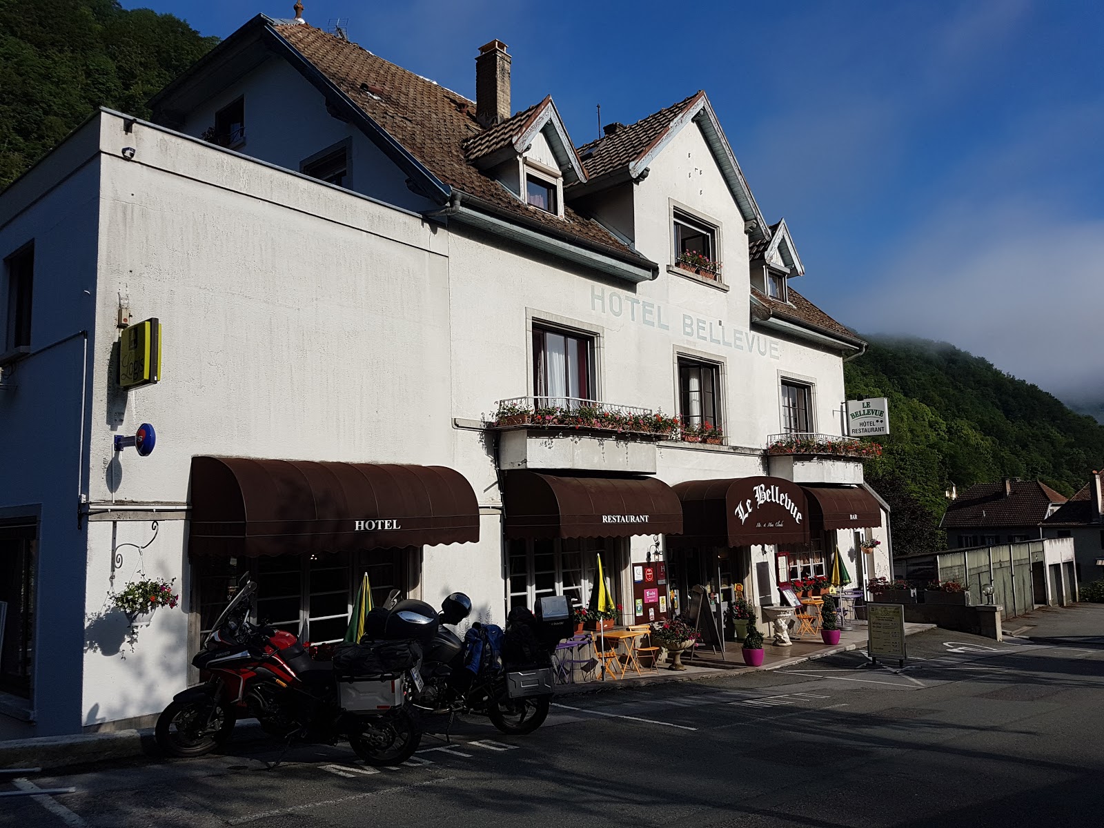La salle de restaurant de l’hôtel Le Bellevue a été entièrement rénovée. Elle peut accueillir jusqu’à 80 couverts. La cuisine est traditionnelle, relevée par les saveurs régionales. Ici les plats et les desserts sont faits maison, concoctés par David (le fils). Pendant qu’il officie aux fourneaux, son frère Romain est en salle. Par son savoir-faire, l’hôtel Bellevue honore son titre de Maître Restaurateur.