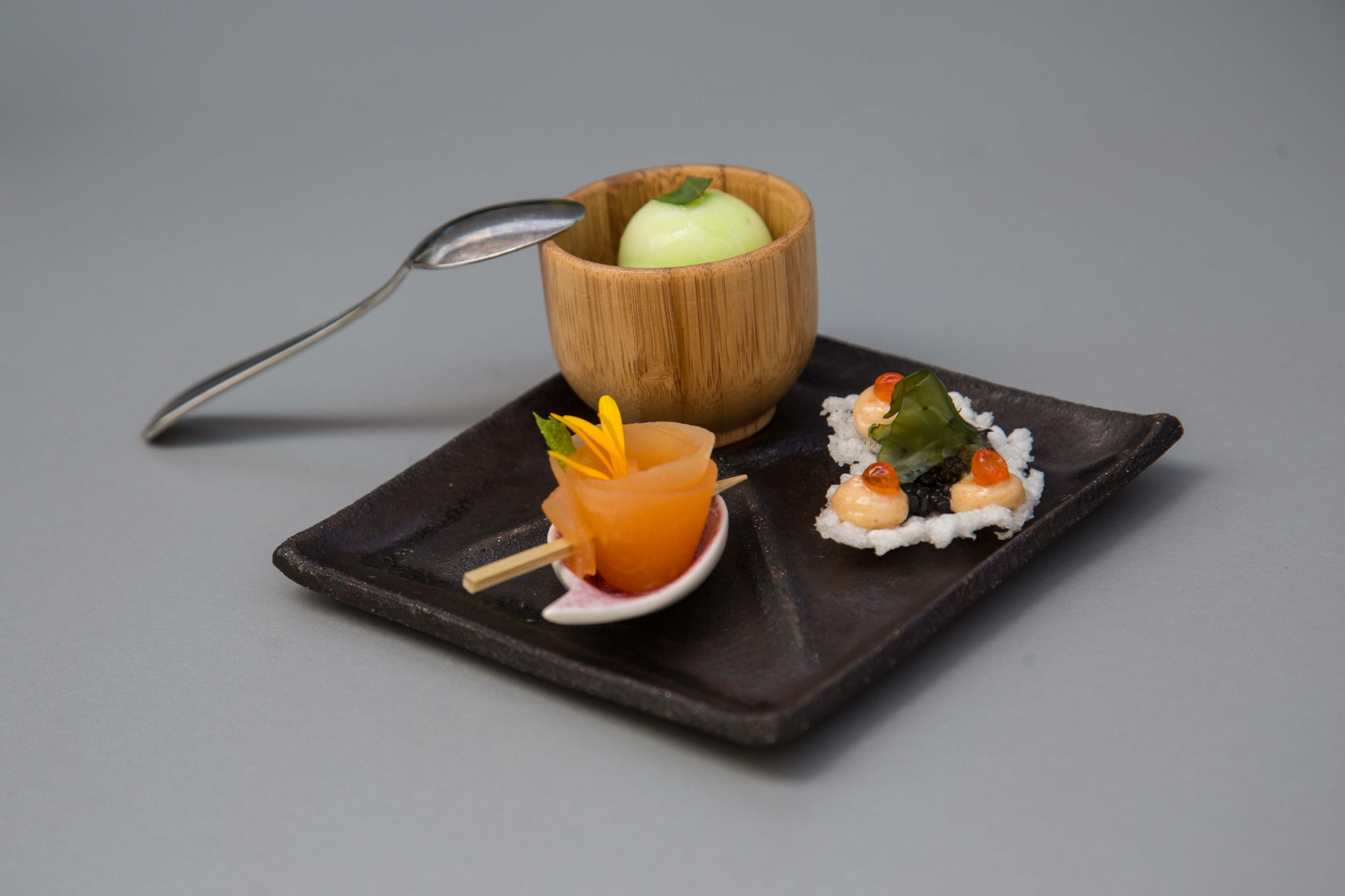 Le Thon : aller-retour / escabèche / oignons nouveaux / estragon / cerise / amande fraîche