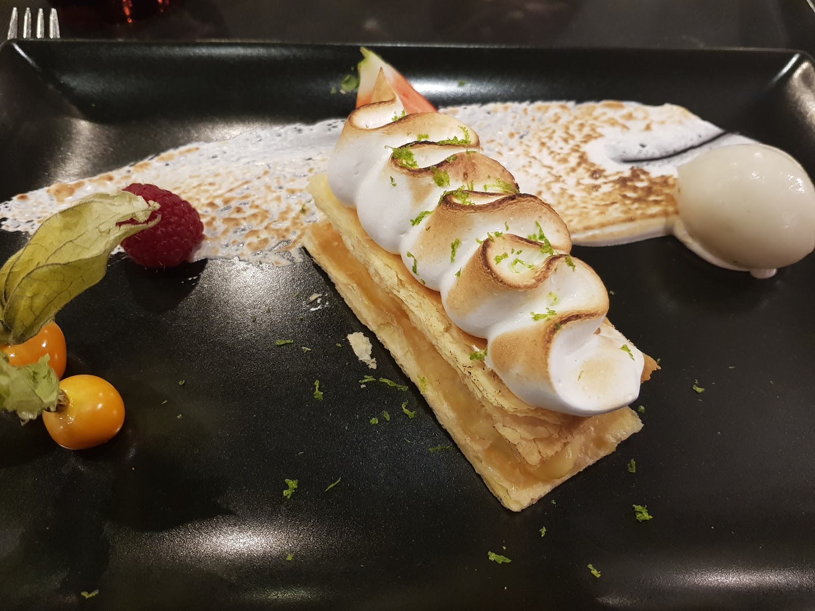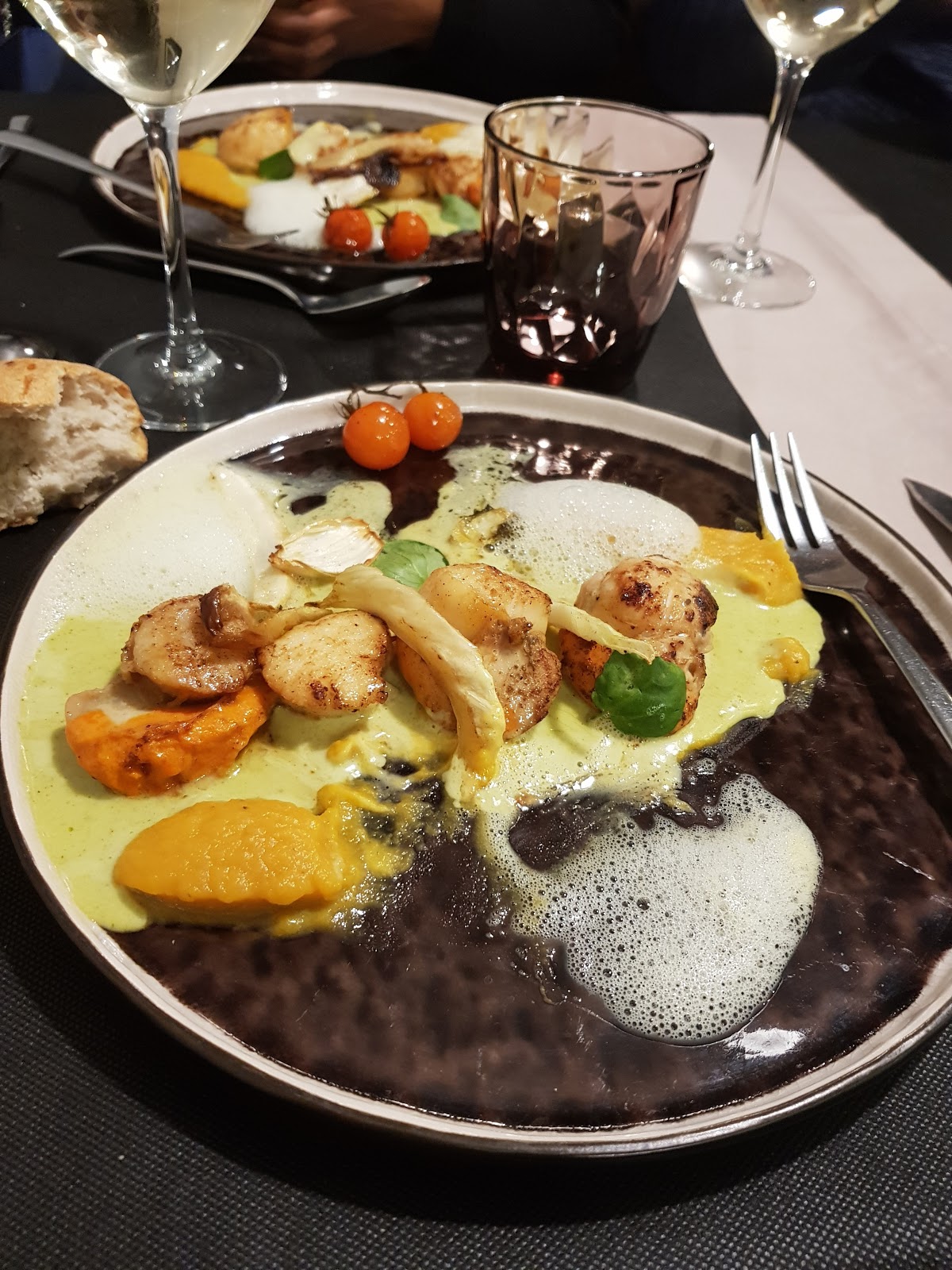 tarte tatin , foie gras poêlé, réduction vigneronne
