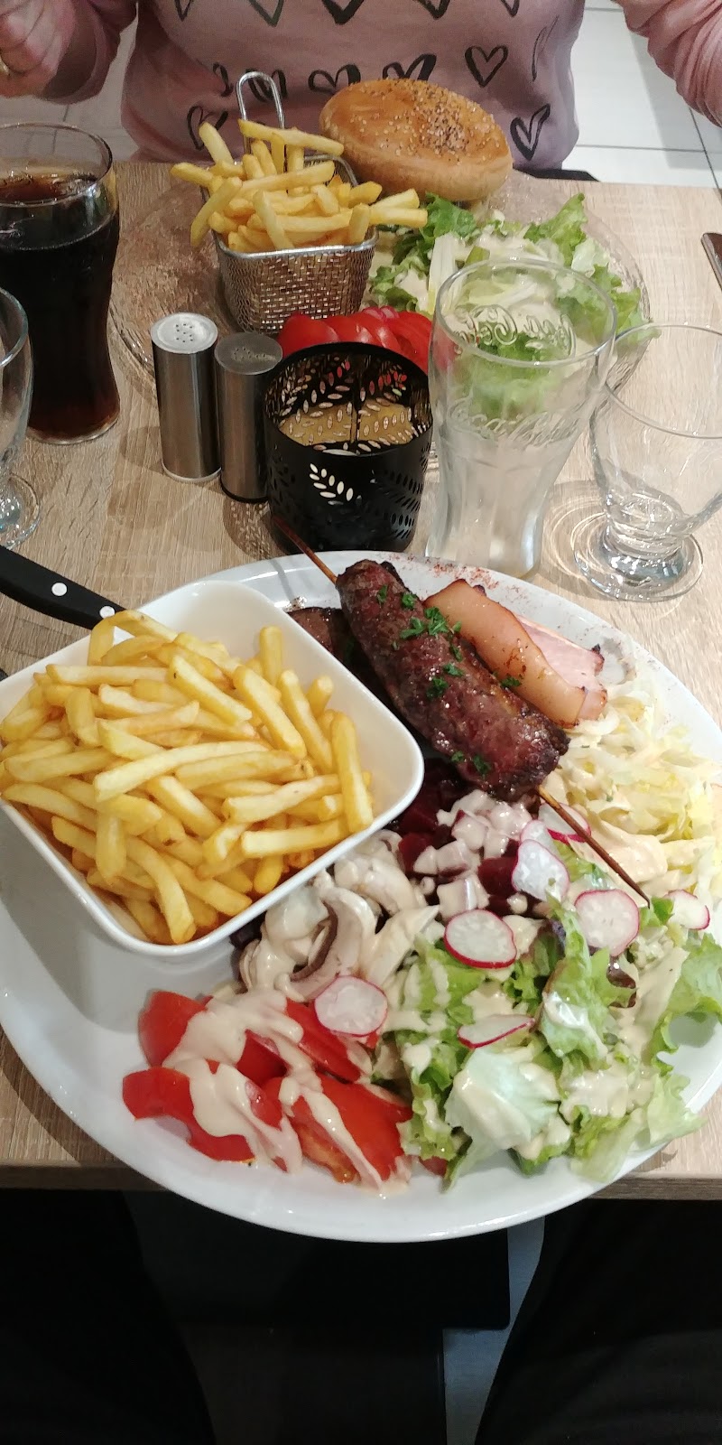 Cuisine française généreuse et pizzas dans une salle cosy et sur quelques tables en extérieur l’été. Spécialité : la planche du Romélie : crème brûlée au Munster, pommes de terre, tranche de lard fumé grillé et salade verte.