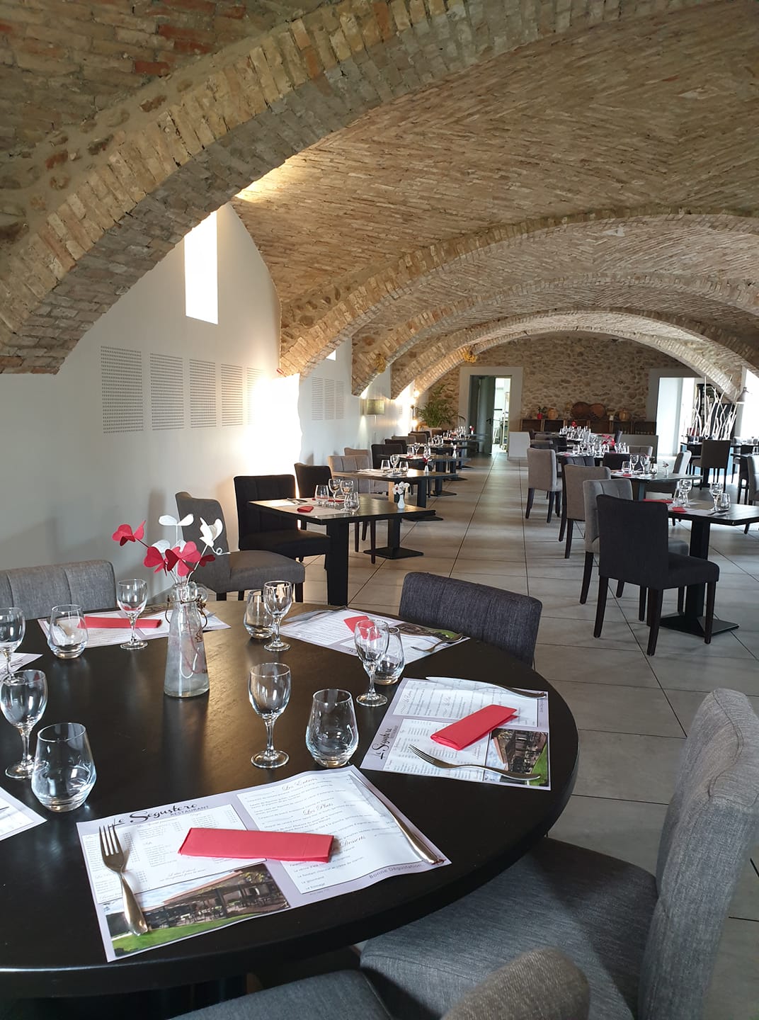 Notre restaurant situé au rez-de-chaussée, ancienne bergerie voûtée dispose de 70 à 80 places assises et de 70 places sur la terrasse extérieure.