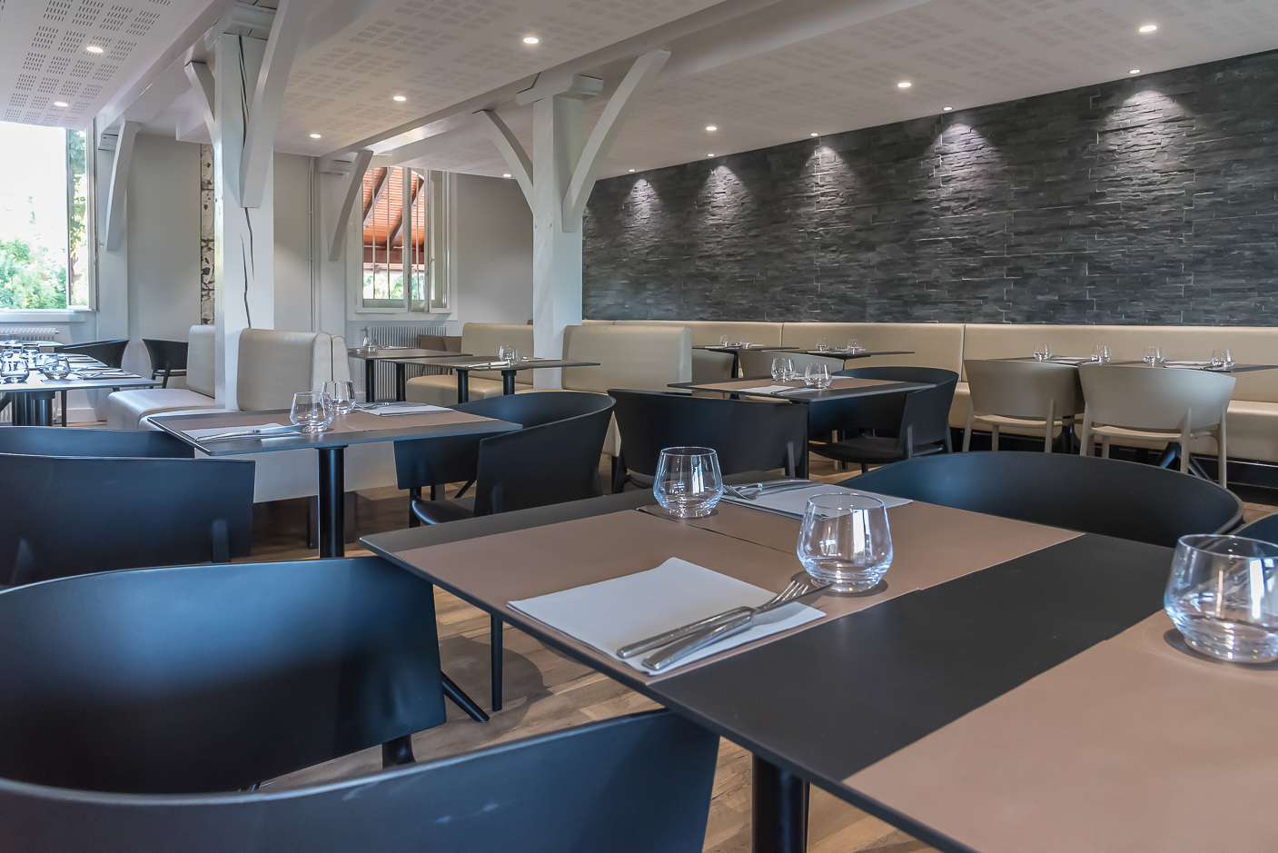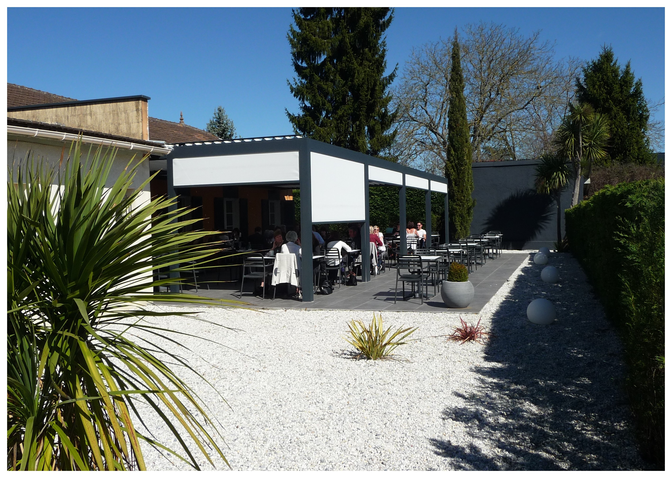 Le Sud vous propose une grande salle moderne et lumineuse ainsi qu’une terrasse bio climatique.