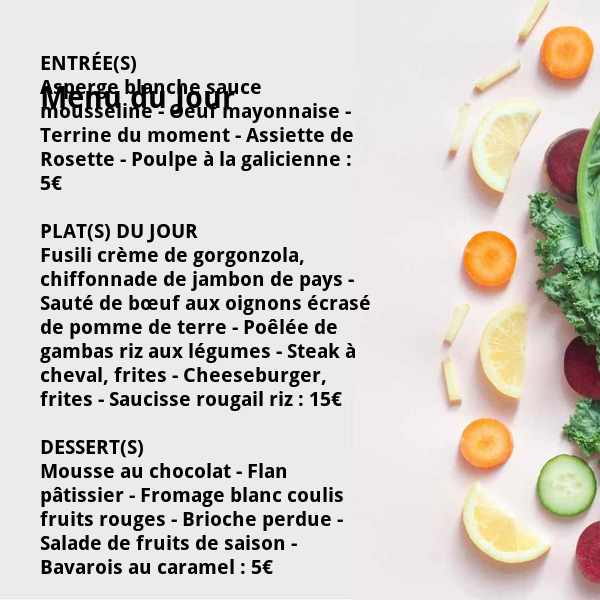 Nous vous proposons de délicieux plats concoctés à partir de produits frais et de qualité provenant directement des fournisseurs du Marché.
