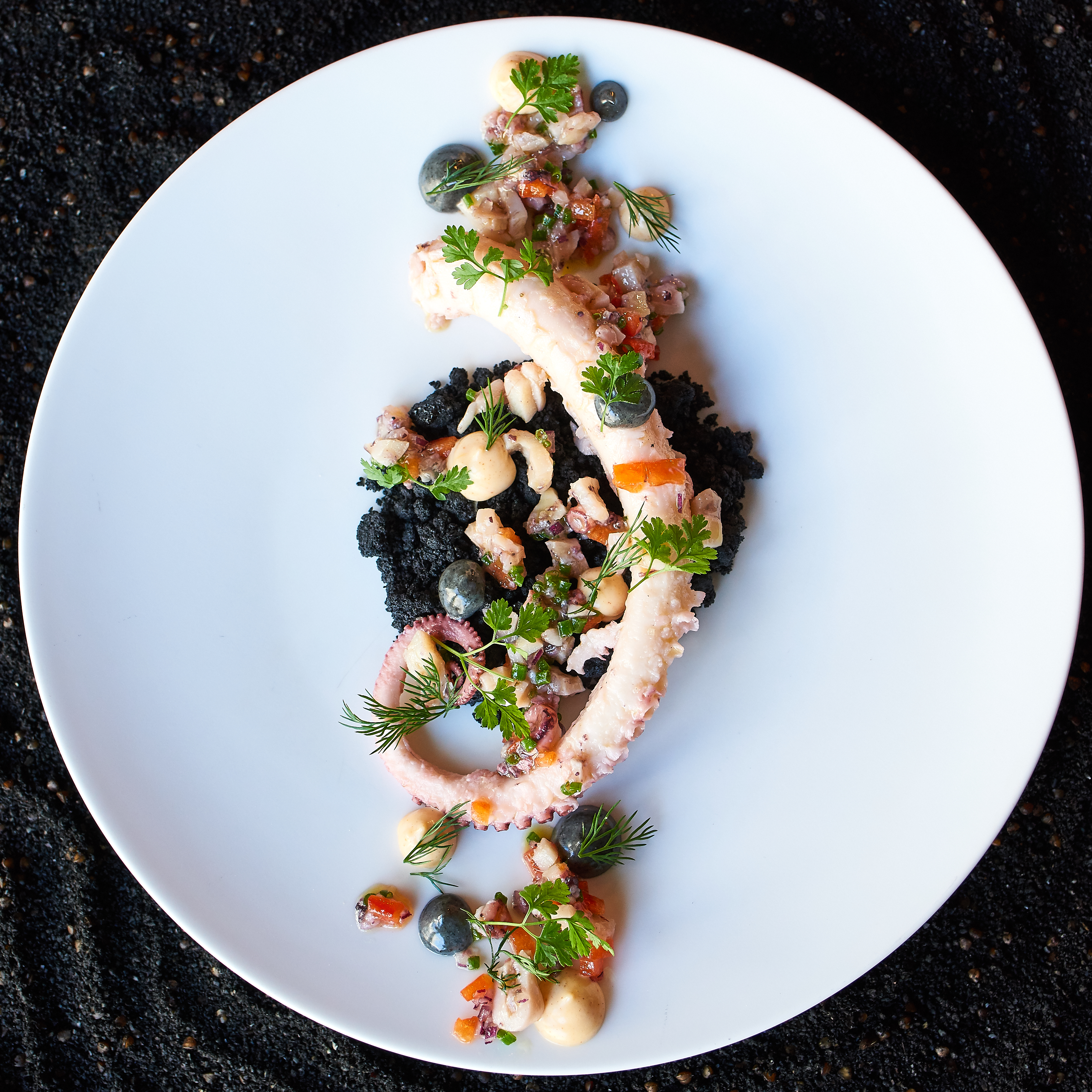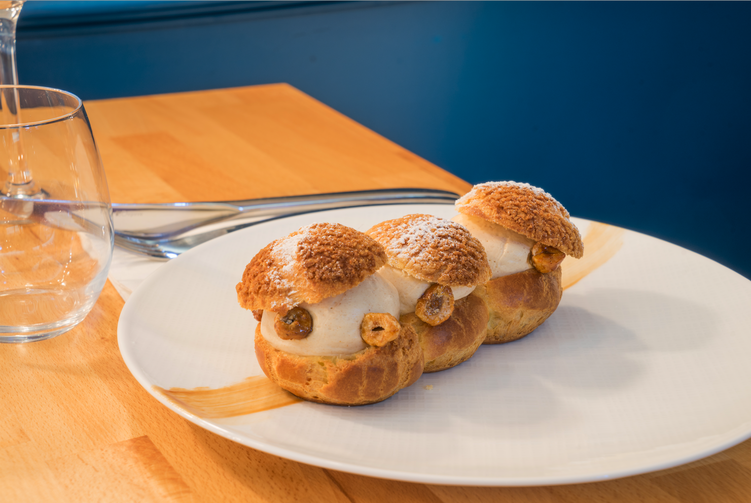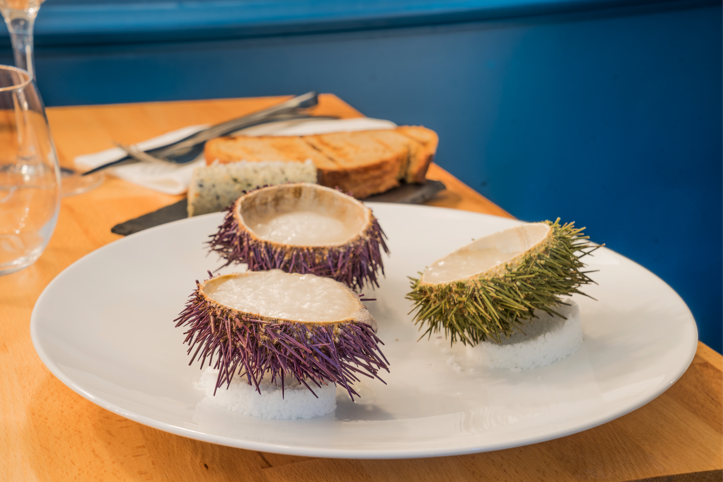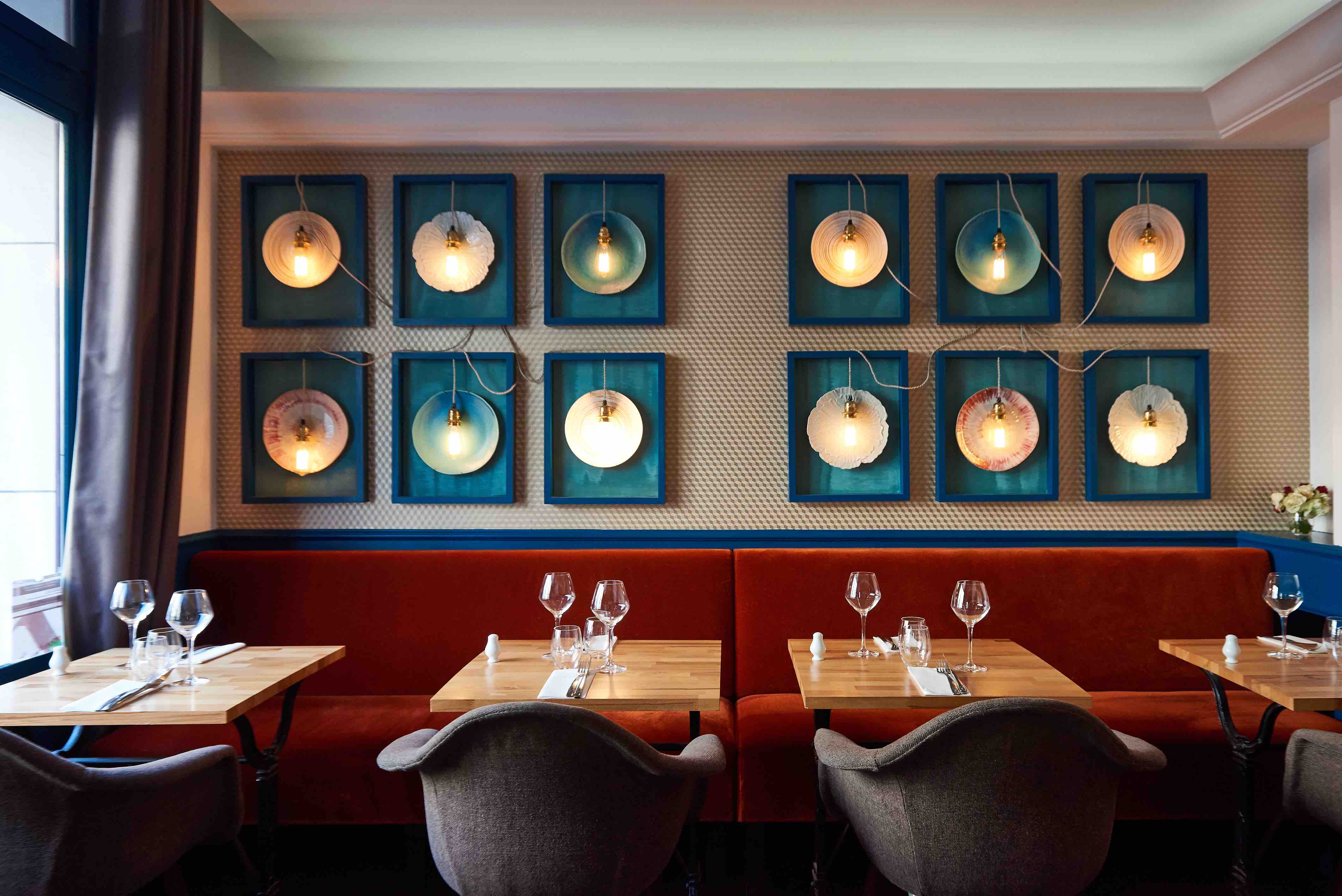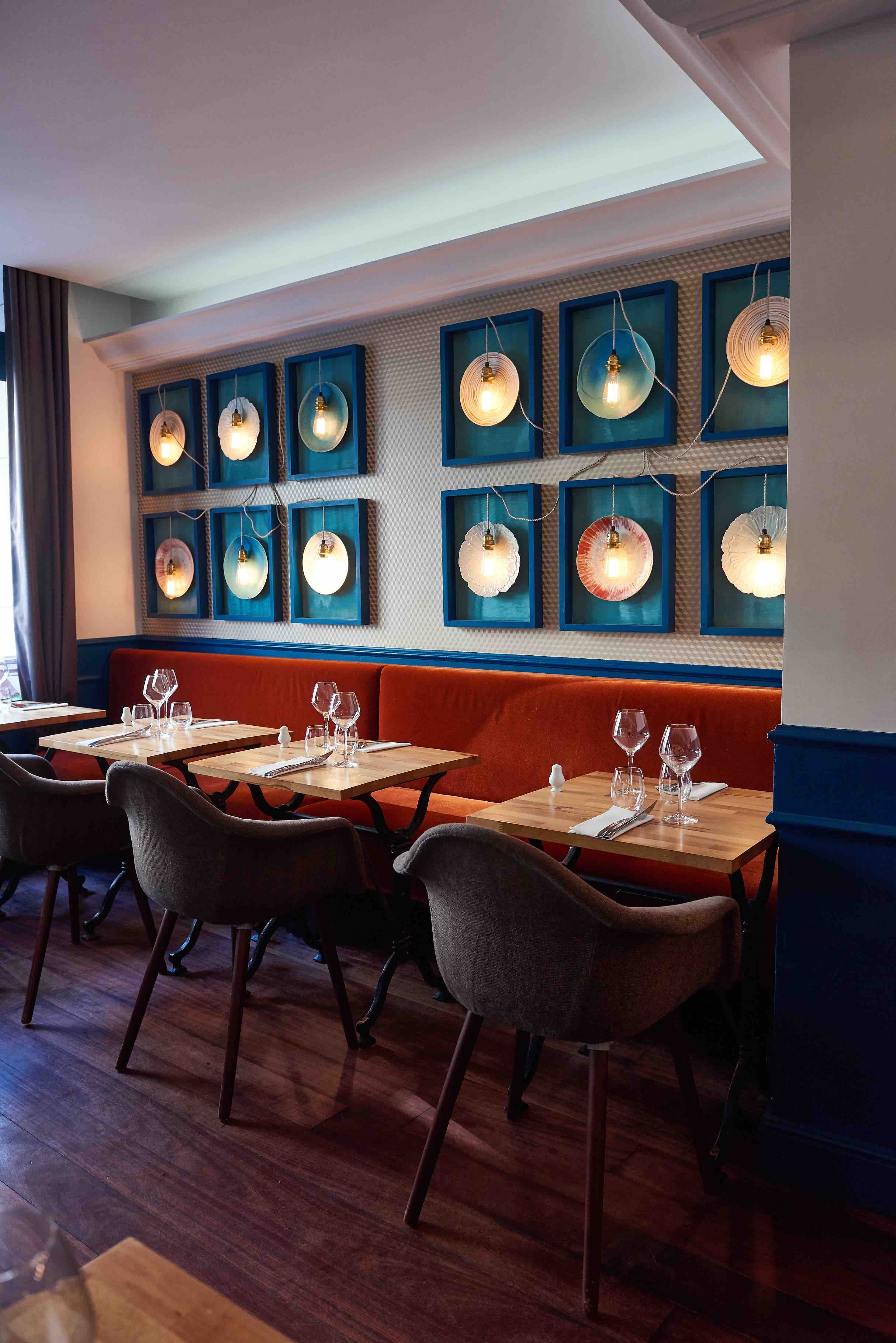 CÔTÉ CADRE – Le Chef du restaurant L’Escudella a imaginé un lieu convivial, où les couleurs chaudes (bleues et teintes orangées) ravissent autant qu’elles apaisent. Les tables en bois vernis côtoient des assiettes mises sous cadre, des plantes vertes, des livres, et quelques œuvres d’art contemporain. Un cadre rassurant pour la trentaine de convives qui peuvent s’installer en salle.