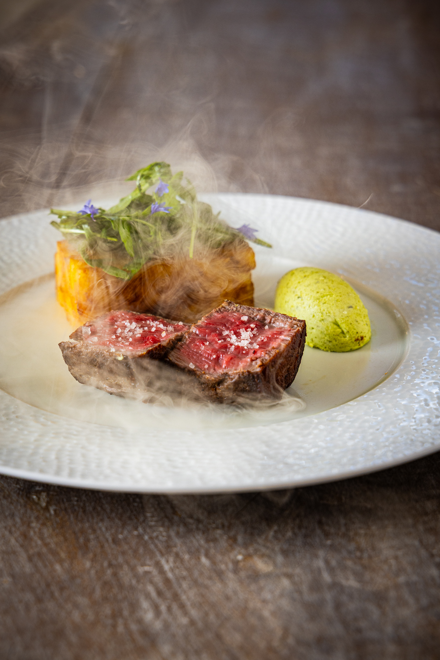 Paleron de boeuf mijoté pendant 8h, espuma carottes oranges