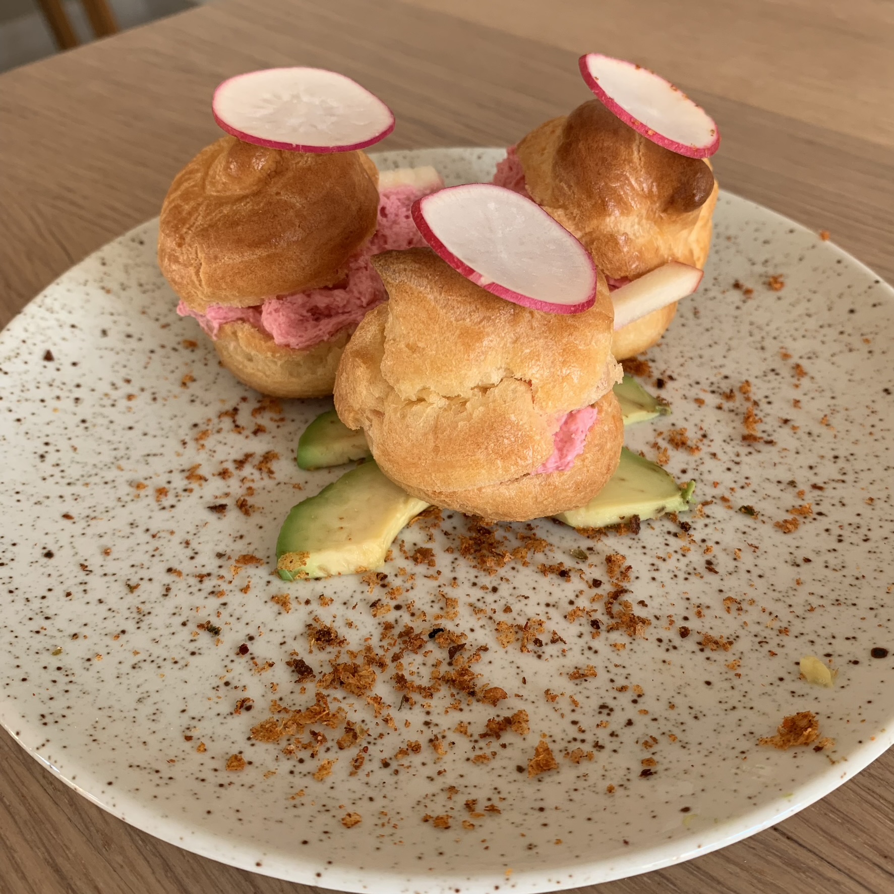 Oeuf en forme, Chantilly d'oeuf au plat, crème de mimosa et sponge cake